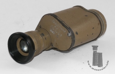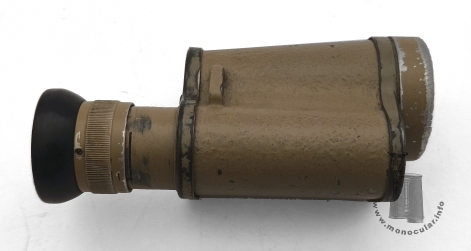 | Bei dem Monokular hier handelt es sich um ein monokulares Dienstglas (so gekennzeichnet) der deutschen Wehrmacht aus dem 2. Weltkrieg. Es trägt den Code "ddx" mit einem Punkt am Ende (ddx.), welcher für die Fa. Voigtländer & Söhne aus Braunschweig steht. Als Seriennummer ist 328805 sowie das Dreieckssymbol für temperaturbeständige Dichtungsfette zur Benutzung unter extremen Temperaturbedingungen eingeprägt. Das Trageband, soweit überhaupt Original, ist gerissen. Der Metallkörper und die Abdeckplatten sind teilweise noch bzw. waren sandfarben ('Dunkelgelb nach Muster') lackiert. Ein Exemplar mit Seriennummer 346825 sowie weitere bestätigen diese Merkmale. |