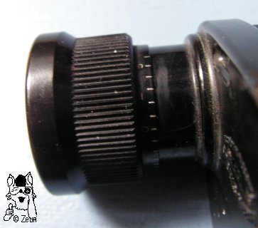| Dieses CF18A von Barr & Stroud (Glasgow & London) mit den optischen Werten 8x 30,5 hat die Seriennummer 99871 und dürfte ca. von 1934 her datieren. Dafür spricht auch die starke Abnutzung der schwarzen Lackierung des Messingokulars und der Alterszustand der Bakelitfassungen. Das Monokular ist zwischen 110 und 115mm lang, Die Bakelitaugenmuschel ist 35,8mm im Durchmesser das linksseitige Okular 28mm. Die Objektivfasung hat einen Durchmesser von 45mm. Das Gehäuse bzw. die Deckel sind oben 55x55mm und unten 60x60mm breit. Der obere Deckel trägt die B&S typische Beschriftung mit Firmennamen und -sitz sowie "8x CF18A". Die Seriennummer ist an der Seite des oberen Deckels eingraviert. Das Glas wiegt 275g. | This CF18A monocular by Barr & Stroud (Glasgow & London) with 8x30.5 specification has serial number 99871. Thus it must date from about 1934. The brass ocular piece and the Bakelite parts show signs of use and age. The monocular measures between 110mm and 115mm in length. The Bakelite eyecup is 35.8mm, the left-hand sided ocular 28mm, the objective frame 45mm in diameter. The housing or the cover plates are 55x55mm at its top and 60x60mm at its bottom, The top cover is marked with the B&S name and location as well as "8x CF18A". The serial number is engraved at the rim of the top cover plate. |