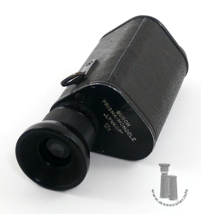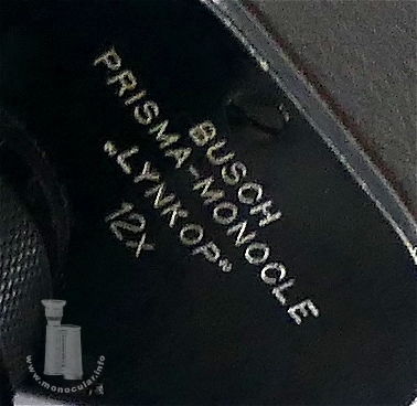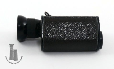 | Das "Lynkop" 12x mit 20er Objektiv ist ein Prisma-Monocle der Fa. E. Busch aus Rathenow vom Anfang des 20. Jh. - ca. 1903-1909. Das Gehäuse hat einen dreieckigen Grundriss mit abgerundeten Ecken, einer Lederummantelung mit Naht sowie angeschraubter Trageriemenöse. Das Monokular ist aus Aluminium, die Deckel sind dreifach verschraubt und schwarz lackiert. Der obere Deckel trägt die Firmenbezeichnung und den Modellnamen. Die Vergrößerung ist in die Seite der 3/3 Bakelitaugenmuschel eingraviert. Es gibt eine Dioptrienskala von plus bis minus Vier. | The "Lynkop" 12x with a 20mm aperture is a prism monocular by E. Busch Rathenow from the beginning of the 20th century - about 1903-1909. The housing has a triangular cross-section with rounded corners. The leather covering has a seam. There is a strap lug screwed to the aluminium body. The cover plates have three screws and are painted black. The top cover is marked with the maker's and the model name. The glass's magnification is engraved on the 3/3 Bakelite eyecup. The latter has a dioptre scale ranging from plus to minus four. |