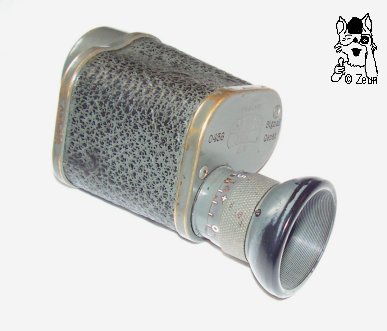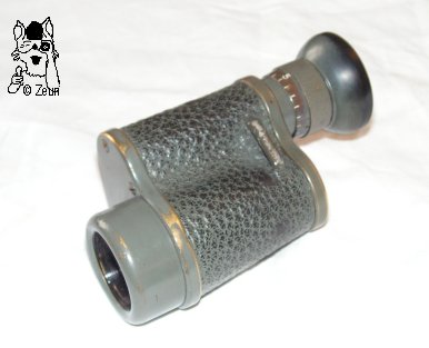 | Dieses 8x24 Monokular gehörte zur Ausstattung der Zeiss Signalgeräte (1. Weltkrieg). Da es keine Montagefüßchen wie das cz6x24blink.htm oder cz4x20.htm hat, wurde es wohl zum Anpeilen in der Hand genutzt, zumal da es ein Fadenkreuz wie das Carl Zeiss 8x24. Außerdem gibt es eine Trageriemenöse. Die Ummantelung des Gehäuses ist mit einem grauen Lack (vgl. Militärisches 8x24) und weist eine gekörnte Struktur auf. Die Augenmuschel ist aus mit Bakelit ummanteltes Messing. Die Maße stimmen ungefähr mit den anderen 8x24 Monokularen der Zeit überein. Die Militär- oder Gerätenummer ist 0419 bzw. 0436 beim abgebildeten Modell, die Seriennummer lautet 640573 zbw.642468 (1916/17). |