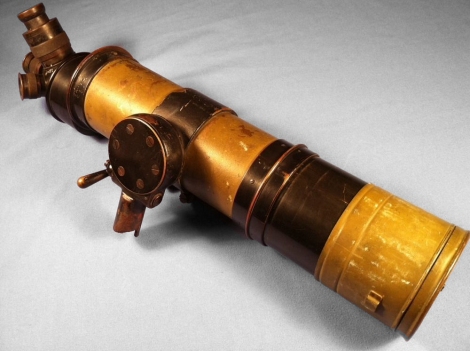 | * Für zahlreiche Detailinformationen sei S. Tomlinson gedankt. ** Möglicherweise wurde das Asem aus dem schon ab 1905 erhältlichen kurzbrennweitigen 80mm Kometensucher (s. 1. Bild, 2. Bild eines Kometensuchers auf einem Wiener Flakturm), den es auch mit Aufrichtprisma gab, entwickelt, wobei die gerade Tubusform erhalten wurde, die Fokussierung aber nicht mehr über eine Zahnstangenfokussierung, sondern Dioptrienausgleich an den Okularen realisiert wurde (s. letztes Bild). |