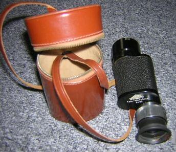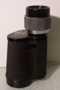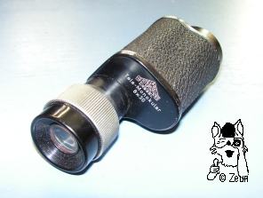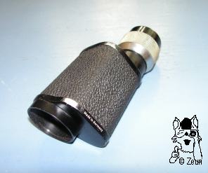 Hertel & Reuss 8x30 Tele-MonokularHertel & Reuss stellte von dem 8x30 Monokular auch eine Variante als Telefoto-Monokular her. Die Bilder zeigen ein Glas mit Gummiaugenmuschel und längerem Objektivtubus und ein Modell mit Plastikaugenmuschel. Die Augenmuschel sind abschraubbar, um das Monokular am Fotoapparat nutzen zu können. |
