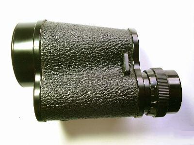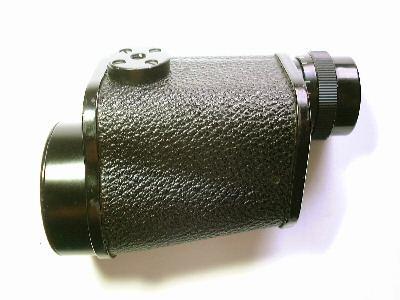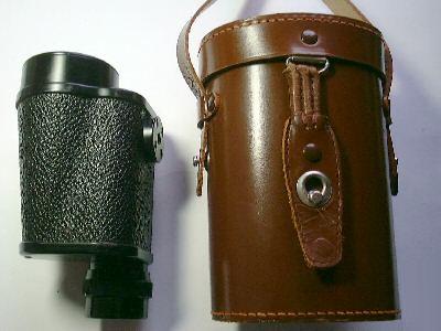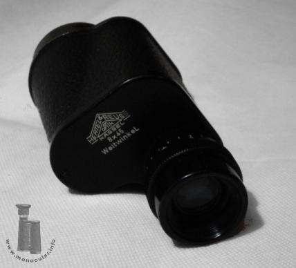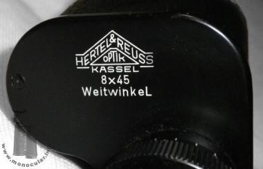 | Bei dem Hertel & Reuss 8x45 handelt es sich um eine Porro-I-Monokular der deutschen Firma Hertel & Reuss (Kassel, s. 3. Foto). Es ist als Weitwinkel-Glas gekennzeichnet und ist als Modell mit oder ohne Stativgewinde bekannt. Es hat eine eingegossene Trageriemenöse. Das Gehäuse ist mit Hartgummi ummantelt. Das rechtsseitige Okular hat eine komplett umlaufende Dioptrienskala, die bei Null und +/- Fünf gekennzeichnet ist. Beide schwarz lackierten Deckel haben nur eine Schraube. | This Hertel & Reuss 8x45 is a Porro I prism monocular made in Kassel by the German maker Hertel & Reuss (see photo 3). It is also marked "wide angle", and mdoels with or without threaded tripod adapters were available. It comes with a cast-in strap lug. The hosuing is covered with Ebonite. The right-nad suided eyepeice has a ful l dioptre scale being marked at zero and +/- five. The optics are coated. Both black painted cover plates have only one screw. |
