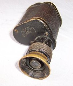 | Dieses Hensoldt Porro-I-Prismenmonokular hat eine 8fache Vergrößerung. Am unteren Deckel ist "8x" und die Seriennummer "45678" eingraviert. Die Kennzeichnung mit der Vergrößerung und ohne Objektivdurchmesser lässt auf ein Modell um den 1. WK. schliesse, evtl. aber Anfang der 20er Jahre, da der obere Deckel bereits mit Hensoldt Wetzlar, nicht mit "Wacht" gekennziehcnet ist. Es ist ein 8x24 Modell. Das Gehäsue besteht aus schwarz lackiertem Messing mit einer Lederummantelung. Das Monokulkar ist 10,5 bzw. 11 cm lang je nach Okularjustierung. |