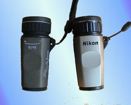 Kenko 8x30, Audubon 6x16 oder Nikon 5x15/7x15, Brunton "Macroscope 7x40" Drehradfokussierung / wheel focusing