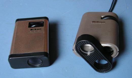 Nikon 6x15 P (1979), Nikon 6x15 II D (1989) mit vorschwenkbarer Lupe (9x) – with swing-in magnifier (9x), Eschenbach Microlux 6x18