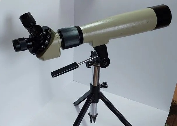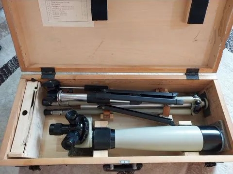 The "ЗРТ 462" (ZRT = "Zritelnaja truba") uses a slightly conical objective tube with a focusing ring like the ZRT 460. Attached to it is a prism housing with a eyepiece turret with three magnifications: 15x, 25x and 45x.