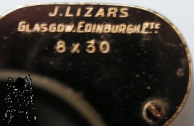 This 8x30 monocular by "J. Lizars", a distributor and maker of cameras and optical goods in Glasgow and later Edingburgh (s. its history at www.edinphoto.org.uk/pd/pd_lizars_background.htm) shows signs of use. The (fake) leather covering is missing, teh ocular is stuck and the thread to screw it into the housing is worn off. The previous owner and seller of this monocular wrote to me: "I took it with me when we recaptured the Suez Canal in 1956 and it saw service in Cyprus, Malaysia and N Ireland". So, this glass has gone to some rough treatment.