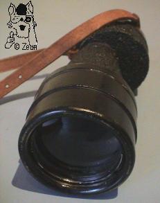 This 7x50 monocular was produced by Nottingham Instruments Limited (NIL in 'Ross' lens logo) in licence to the 7x50 Ross glasses. engraved are year '1944' and the 'broad arrown' sign near to one of the cover screws (s. 1. photo). The markings referring to a reticule, and the red screws for apparatus dessicating also hint to its military use. The markings run: "Graticules 1/2° apart 1/4° 1/2° and 1° high." A reticule is not inside the eyepiece any more. Probably the objective lens was replaced later, as the lens is coated already. |