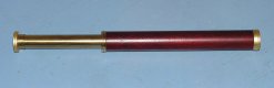| Ein Messing-Taschenteleskop mit einem Auszug. Die Linsen sind unvergütet, so dass es aus der Zeit vor dem 2. WK stammen muss; Wahrscheinlich eine englische Fabrikation (evtl. Ross). Die rot lackierten Linsenhalterungen und Teile stechen hervor. Die Vergrößerung ist ca. 4fach. Der Tubusdurchmesser ist 14mm und das Teleskop ist zusammengeschoben 14,7cm und ausgezogen 25cm lang. | This brass pocket telescope has one draw. The lenses are uncoated, so the scope must date from before the WWII; probably an English make (maybe Ross). The red painted lens frames and parts are sort of an eye-catcher. Magnification is about 4 times, and the tube diameter is 14mm. The penscope is 147mm closed and 250mm opened. |