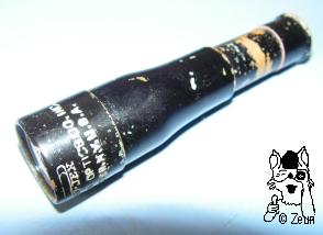 | Dieses kleine Taschenteleskop mit der Modellbezeichnung "Pro-jex" wurde von "Projection Optics Co. Inc." in Rochester, New York in den USA wahrscheinlich vor dem 2. Weltkrieg gefertigt. Es ähnelt sehr dem Wollensak PockeScope Sr. – beide Hersteller kommen aus Rochester. Die Vergrößerung liegt bei vier- bis fünffach. Mit dem Auszug lässt sich Fokussieren. Das Pro-jex ist aus schwarz lackiertem Messing, zusammengeschoben 76mm, ausgezogen 102mm und misst am Objektiv 24mm im Durchmesser. Die Objektivlinse ist 21mm. Zum Okular hin verjüngt sich das Teleskop zu einem Durchmesser von 18mm. Das Gewicht beträgt lediglich 53g und es gibt ein kleines Stofffuteral für den Transport. | This little pocket telescope with model name "Pro-jex" was made by "Projection Optics Co. Inc." in Rochester, N.Y., USA, probably before the second World War. It looks much like the Wollensak PockeScope Sr. – both optical companies came from Rochester. Its magnification is about 4x or 5x. Focussing is done by a one-draw adjustment. The Pro-jex is mad of black lacquered brass. It is 76mm closed, and 102mm extended. The objective tube diameter is 24mm, the objective lens itself is 21mm. The telescope slenders to a 18mm diameter towards the ocular. It only weighs 53g and comes with a little cotton pouch for transport. |