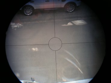 | Ein besonderes Zoom-Monokular ist das Batterie betriebene Motorzoom 1,5-12x Modell der US-Firma Sigma Dynamics. Wahscheinlich wurde es für Überwachungsaufgaben entwickelt, da es ein Fadenkreuz mit Zielkreis im rechten Okular enthält. Auch der geringe Vergrößerungsbereich von zunächst 1,5fach könnte dafür sprechen: zuerst wird ein Überblick geschaffen, dann lässt sich schnell bis zum 12x Detail heranzoomen. Das linke Okular ist ein Blind-Okular, das zum einfacheren Abdecken des nicht-schauenden Auges dient. Das Okularstück lässt sich zur Einstellung des Augenabstands verschieben. Beide Okulare haben eine Weichgummiaugenmuschel mit Seitenblendschutz. Das rechte Okular hat eine Dioptrienskala von plus bis minus Vier und die Linse hat eine gelbliche Vergütung. | A special zoom monocular is a battery powered motor driven 1.5-12x model by Sigma Dynamics Corp. It was probably developped for surveillance tasks, because there is a reticle with croshhairs and circle within the right ocular. Another reason could be the low 1.5x magnification to give a good overview and then zooming into detail up to 12x. The left ocular is a blind one which covers the non-observing eye. This eyepiece can be moved to adjust interpupillary distance. Both oculars have soft rubber eyecups with rayshades. The right ocular has a dioptre adjustment ranging from + to - 4. The ocular lens is coated yellow. |