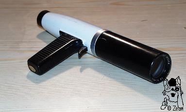 Selsi 10x30 mit Abzug-FokussierungDieses ungewöhnliche Monokular von Selsi aus Japan hat einen Pistolen-artigen Haltegriff mit einem federnden Abzug, der das Okularlinsensystem (nach hinten) verschiebt, so dass auf bestimmte Entfernungen fokussiert werden kann bzw. ein Dioptrienausgleich stattfindet. Ein anderes bekanntes Exemplar trägt das Firmenlogo von "Miyauchi". Vergrößerung: 10x |