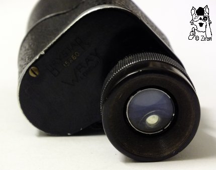 The Wray "Brystar 15x60" can be called a small spotting scope. The lower cover plate is marked with the serial number 173121. The monocular is made of aluminium. The housing and conical objective tube are covered with a textured hard rubber, the metal parts are lacquered black. The eyecup is made of plastic. The lenses are coated. It weighs about 584g. It is 236-245mm in length. The housing measures 59x62mm at its top and 70x70mm at its bottom. The 14cm long objective tube increases from 49mm to 71mm in diameter. The eyepiece is 29.5mm, the focusing part 34.5mm, and the eyecup 33mm in diameter. |